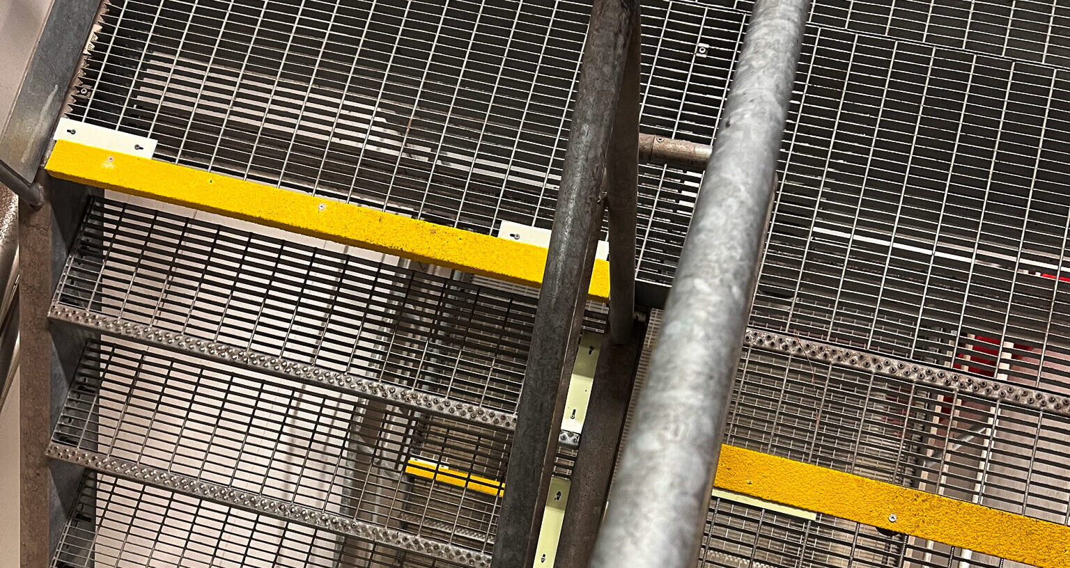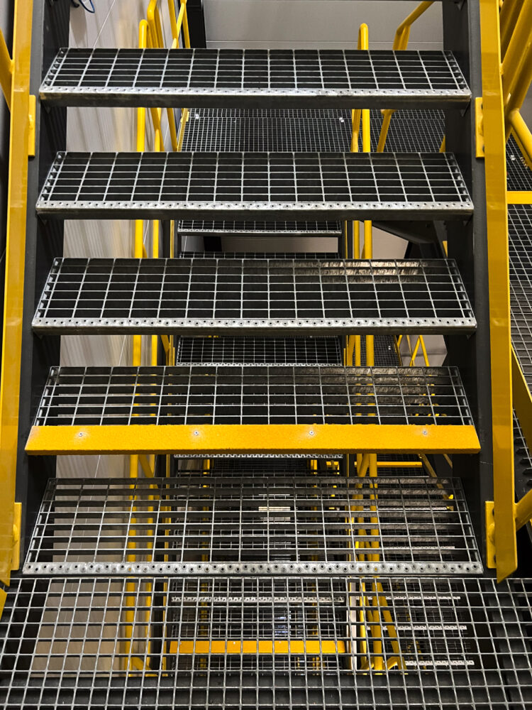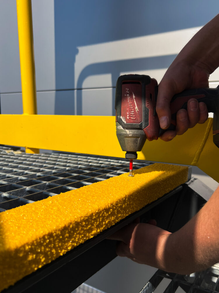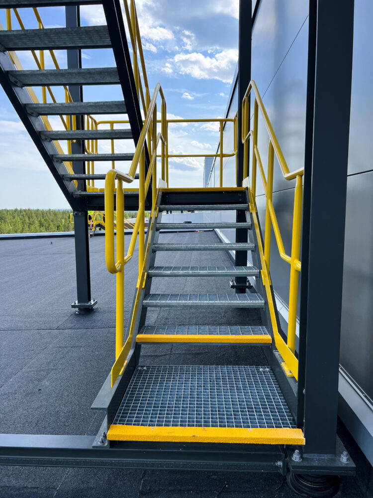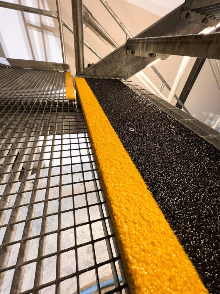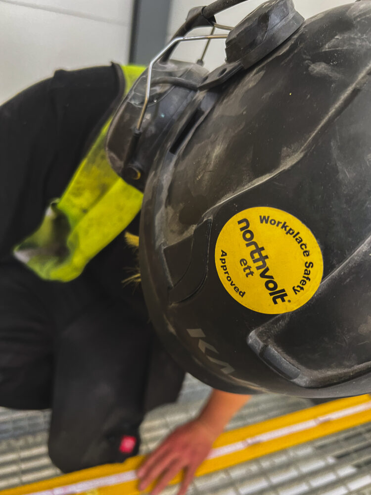 Sisällä Northvoltin Revoltissa, josta tulee Euroopan suurin akkukierrätyslaitos, asennetaan lasikuituportaiden nenät. Nordec on tilauksen takana, ja me itse asensimme ne.