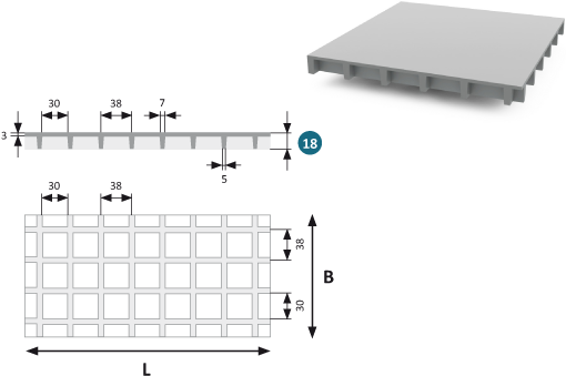 | L (mm) | B (mm) | kg/m2 |