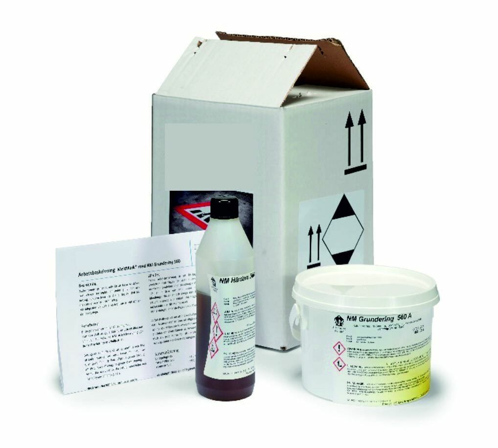 2K pohjamaali kivi-, betoni- ja asfalttialustojen esikäsittelyyn ennen Safestep HÅGA – termoplastisen kontrastimerkinnän levittämistä. Sekoita kaksi komponenttia keskenään ja sivele merkinnän taustapuoli ennen levitystä.