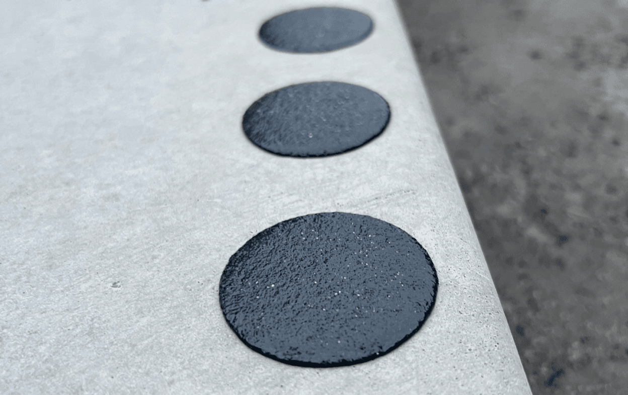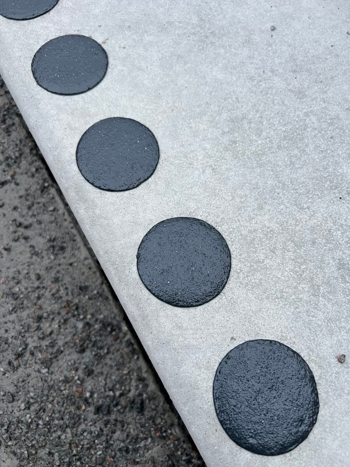 Safestep HÅGA on termoplastinen kontrastimerkintä, joka on tarkoitettu portaiden, luiskien ja tasoerojen kontrastimerkintään ulkona betonissa, kivessä ja asfaltissa. Merkintöjä on saatavana ø50 mm:n pisteinä ja 1 m x 50 mm:n viivoina. Tuote sulatetaan alustaan kaasupolttimella, ja se mukautuu epätasaisuuksiin ja pintavirheisiin, minkä ansiosta tuote on erittäin kiitollinen työstettäväksi.