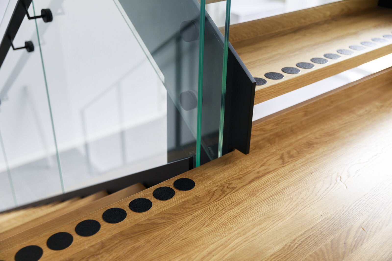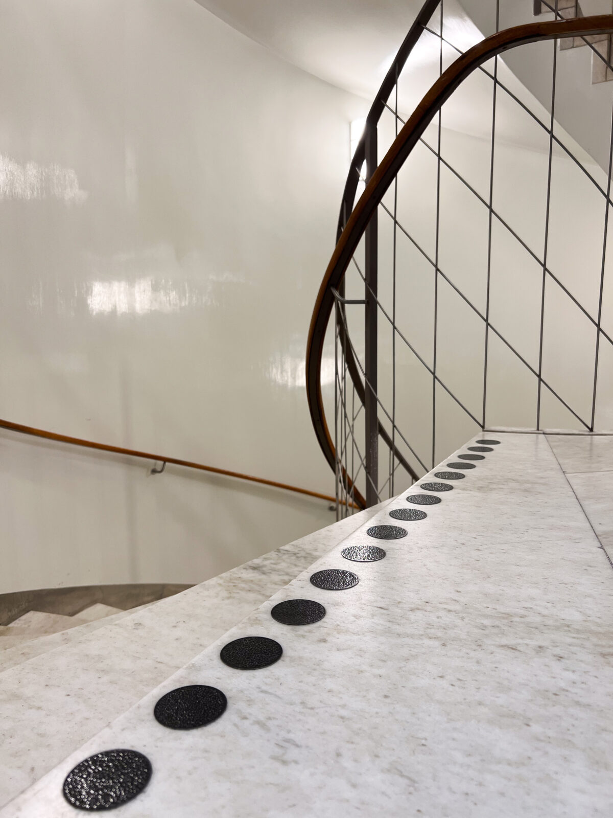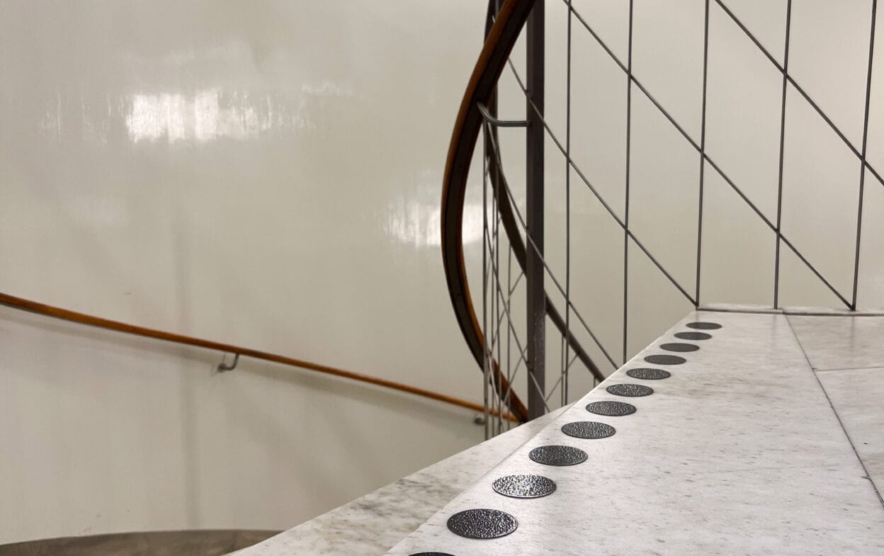 Tärkeää muistaa: Suomessa portaiden kontrastimerkintöjä ohjaavat Valtioneuvoston asetus rakennuksen esteettömyydestä (241/2017) sekä Ympäristöministeriön ohje Esteetön rakennus ja ympäristö. Näiden mukaan portaiden askelmien etureunat tulee merkitä selkeästi havaittavilla kontrastimerkinnöillä, jotta portaiden alku ja loppu on helppo tunnistaa ja liikkuminen on turvallista.