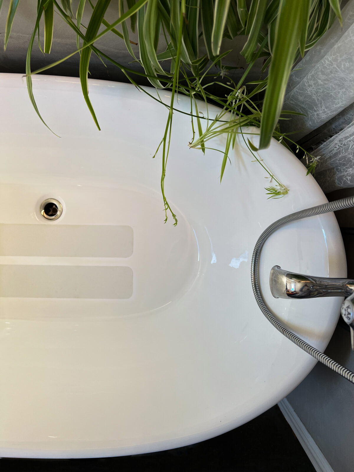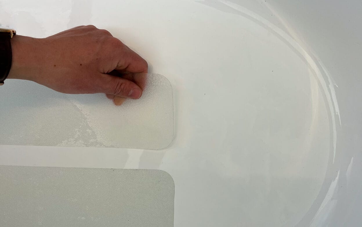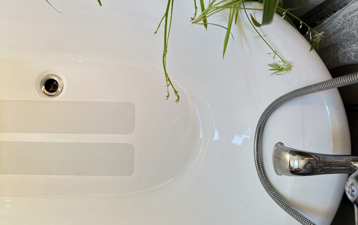 Läpinäkyvä liukastumista estävä suoja kylpyammeisiin.
