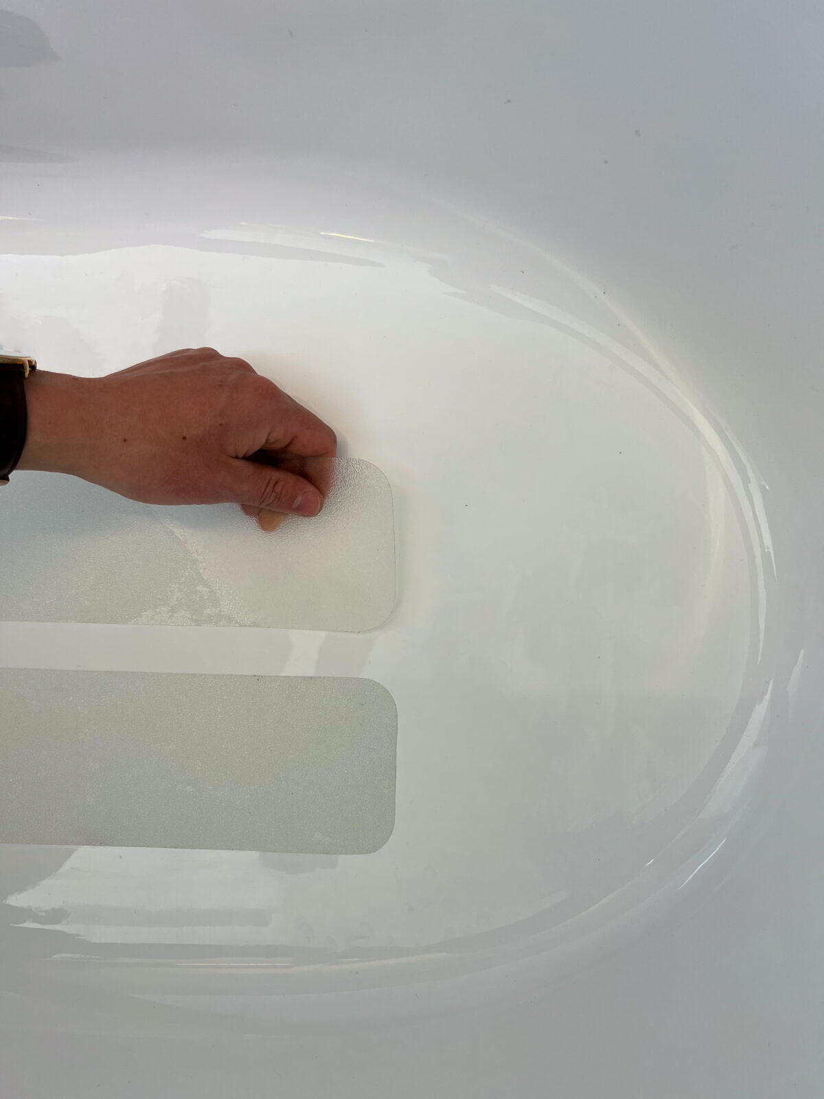 Kestävät suojat, joissa on itseliimautuva tausta ja liukumaton pinta, suunniteltu antamaan paremman otteen ja jalansijan kylpyammeissa. Läpinäkyvä pinta ja hyvä tarttuvuus teräs-, emali-, keramiikka- ja akryylipintoihin. Halpa ja helppo liukastumisenestotuote, joka vähentää liukastumisonnettomuuksien riskiä kotona, hotellissa, kuntosalilla, kylpylässä tai työpaikan suihkussa.
