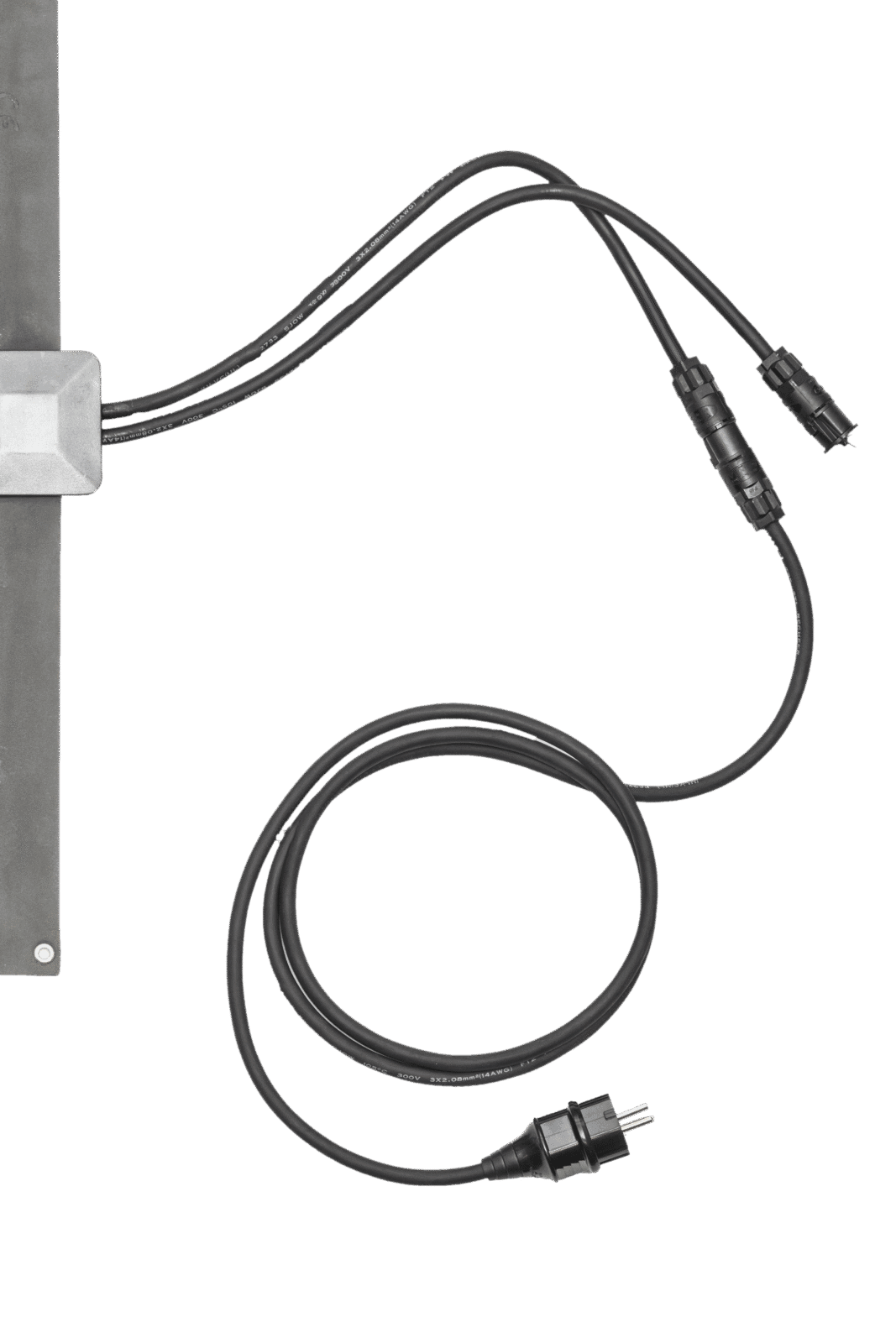 Virtajohto on vesitiivis ja se on tarkoitettu jätettäväksi ulos koko talvikauden ajaksi. Suojausluokka IP 68. Pituus: 2 m.