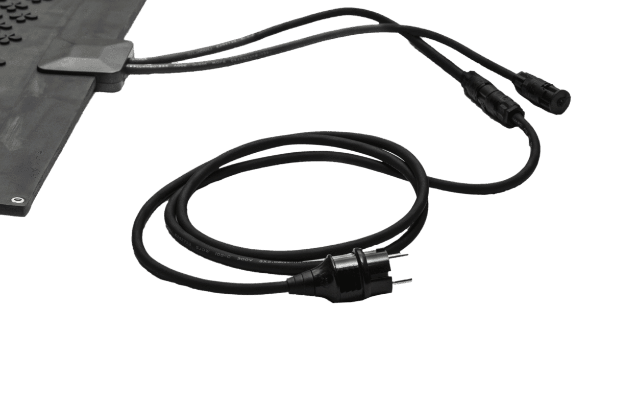 Jokainen lämmitysmattosarja vaatii virtajohdon, jolla järjestelmä liitetään maadoitettuun seinäpistorasiaan. Virtajohto liittää järjestelmän 230 V:n pistorasiaan.