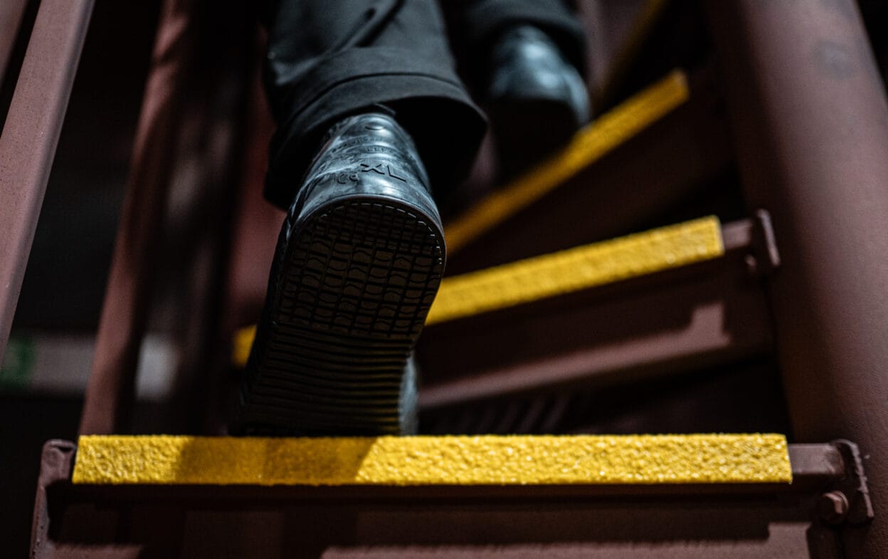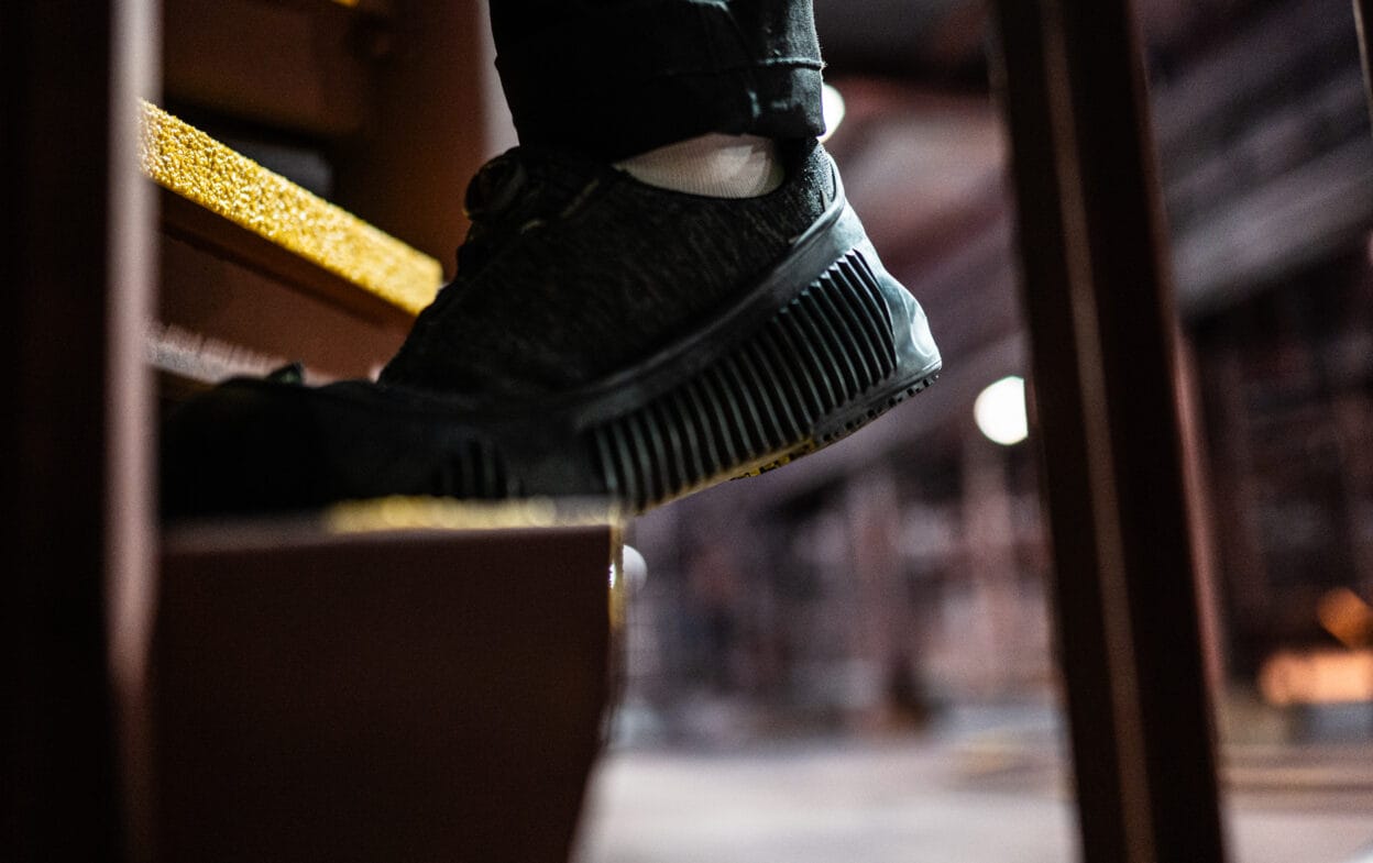 Turvakenkä, joissa on teräskärki ja liukumaton pohja.